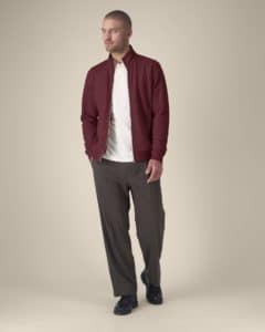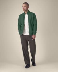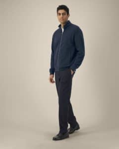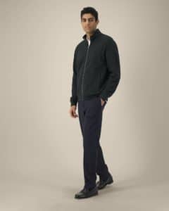 Col montant dans la matière principale Bande de propreté en chevron Demi-lune dans la matière principale au dos du col Zip métal milieu devant Manches montées Poches passepoilées Côte 1x1 au bas de manches et bas de corps